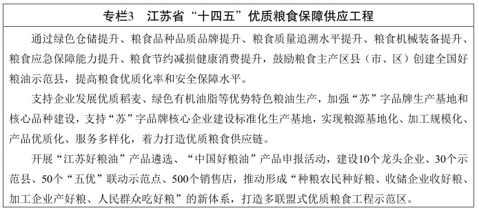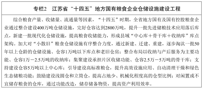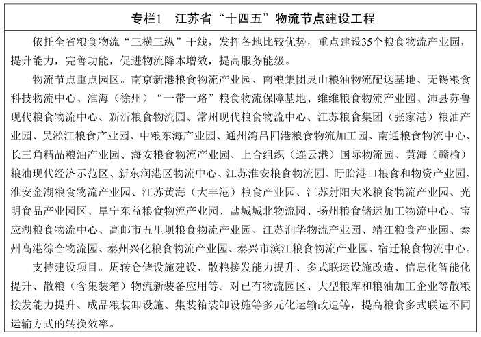 江蘇省“十四五”糧食流通
